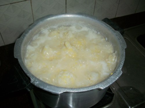 Cover and cook for 4 whistle and simmer it for 10 mins..Let the pressure go by itself...Open the pressure cooker and mix well..