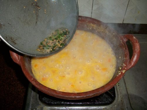 Now make seasoning by heating ghee and crackling mustard seeds,cumin seeds,asafoetida and curry leaves..